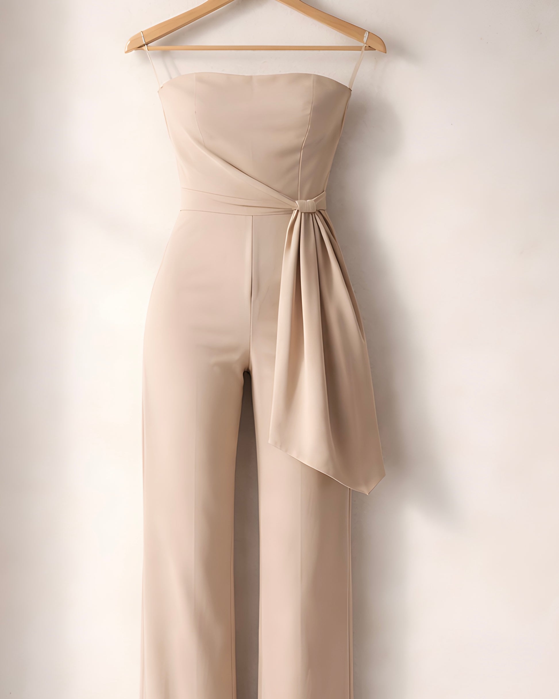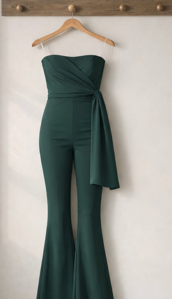 Mono de silueta ajustada confeccionado en tejido elástico de tacto suave, con caída fluida y acabado mate. Su diseño palabra de honor realza la zona del escote con un efecto limpio y sofisticado, mientras el drapeado lateral estiliza la figura y aporta movimiento.